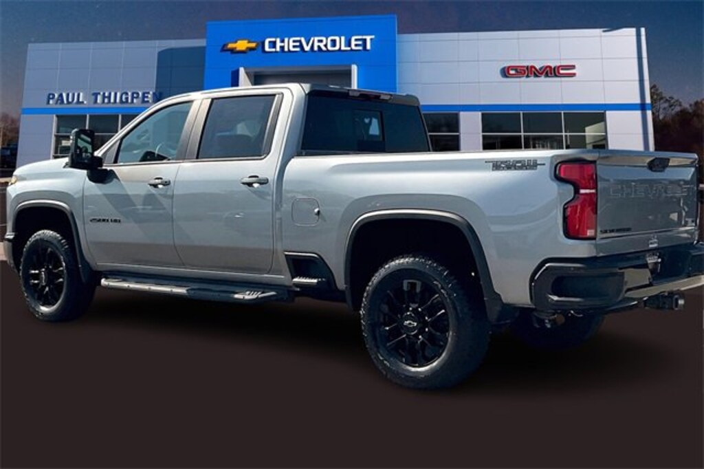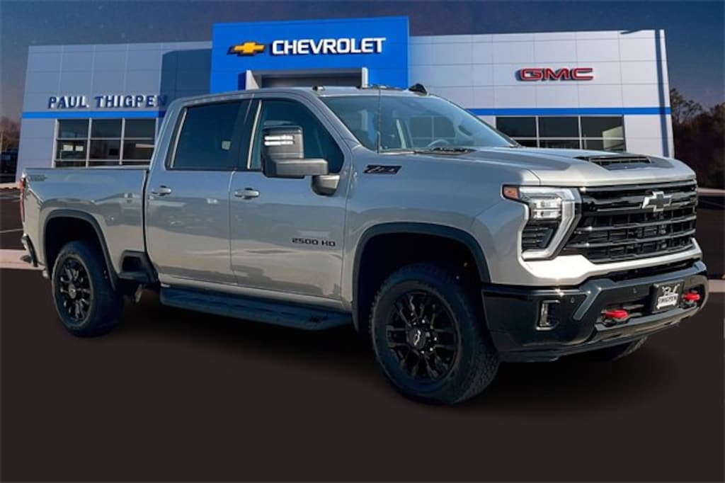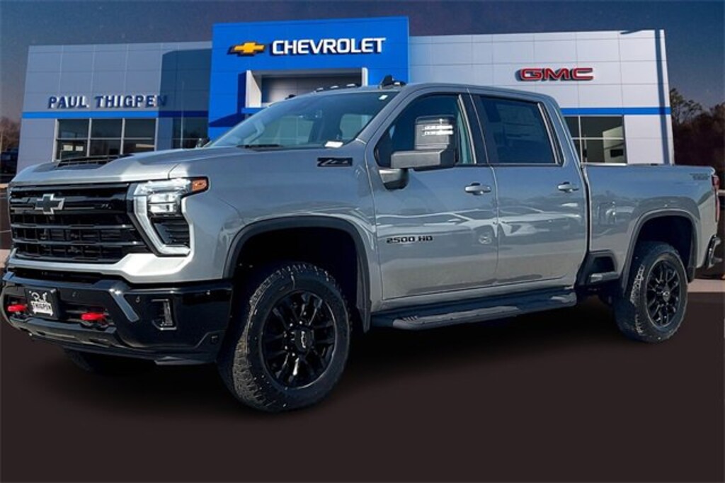 Sterling Gray Metallic 2025 Chevrolet Silverado 2500HD LT Duramax 6.6L V8 Turbodiesel 4WD Cloth Rear Seat w/Storage Package, Convenience Package (10-Way Power Driver Seat Adjuster w/Lumbar, Dual-Zone Automatic Climate Control, Front LED Fog Lamps, LED Cargo Area Lighting, and Manual Tilt & Telescoping Steering Column), Convenience Package II (Hitch Guidance w/Hitch View, In-Vehicle Trailering App System, Power Sliding Rear Window w/Defogger, and Universal Home Remote), Gooseneck/5th Wheel Prep Package (Black Chevytec Spray-On Bedliner), Heat Package (Heated Driver & Front Outboard Passenger Seating and Heated Steering Wheel), Leather Package, Max Trailering Package, Preferred Equipment Group 1LT (120-Volt Bed Mounted Power Outlet, 120-Volt Interior Power Outlet, 170 Amp Alternator, 2-Speed Electronic Shift Transfer Case, 4-Way Manual Driver Seat Adjuster, Black Mirror Caps, Bluetooth® For Phone, Chevrolet Connected Access Capable, Color-Keyed Carpeting Floor Covering, Compass, Deep-Tinted Glass, Electronic Cruise Control w/Set & Resume Speed, EZ Lift Power Lock & Release Tailgate, Front Rubberized Vinyl Floor Mats, Halogen Reflector Headlamps, HD Rear Vision Camera, Heated Vertical Trailering Mirrors, Keyless Open & Start, OnStar Services Capable, Power Door Locks, Power Front Windows w/Driver Express Up/Down, Power Front Windows w/Passenger Express Down, Power Rear Windows w/Express Down, Push Button Start, Rear 60/40 Folding Bench Seat (Folds Up), Rear Rubberized Vinyl Floor Mats, SiriusXM w/360L Trial Subscription, Standard Tailgate, Steering Wheel Audio Controls, Wi-Fi Hotspot Capable, Wireless Phone Projection, and Wrapped Steering Wheel), Remote Start Package (Electric Rear-Window Defogger, Remote Vehicle Starter System, and Unauthorized Entry Theft-Deterrent System), Safety Package (Bed View Camera w/2 Trailer Camera Provisions, HD Surround Vision, Rear Cross Traffic Alert, Trailer Camera Provisions, Trailer Side Blind Zone Alert, and Ultrasonic Front & Rear Park Assist), Suspension Package, Trail Boss Package (Animated LED Projector Headlamps, Auto-Dimming Inside Rear-View Mirror, Black Grille Bar w/Chevy Black Bow Tie, Front Frame-Mounted Red Recovery Hooks, Heated & Auto-Dimming Vertical Trailering Mirrors, High Gloss Black Front Bumper, High Gloss Black Mirror Caps, High Gloss Black Rear Bumper, and Wheels: 20 High Gloss Black Painted), Up-Level Rear Seat w/Storage Package, Z71 Off-Road Package (Hill Descent Control and Off-Road Suspension), 10-Speed Automatic, 4WD, Black Leather, 17 Machined Aluminum Wheels, 2 Charge/Data USB Ports Inside Center Console, 3 Round Black Tubular Off-Road Assist Steps (LPO), 4-Wheel Disc Brakes, 6 Speakers, 6-Speaker Audio System, 720 Cold-Cranking Amps Heavy-Duty Battery, ABS brakes, Adaptive Cruise Control, Air Conditioning, Alloy wheels, AM/FM radio: SiriusXM with 360L, Apple CarPlay/Android Auto, Auto High-beam Headlights, Body-Color Front Bumper, Body-Color Rear Bumper, Brake assist, Bumpers: chrome, Cloth Seat Trim, Delay-off headlights, Driver door bin, Driver vanity mirror, Dual 220-Amp Primary/170-Amp Auxiliary Alternators, Dual front impact airbags, Dual front side impact airbags, Durabed Pickup Bed, Electronic Stability Control, Emergency communication system: OnStar, Engine Block Heater, Exhaust Brake, Floor-Mounted Center Console, Front 40/20/40 Split-Bench Seats w/Lockable Storage, Front anti-roll bar, Front Bucket Seats, Front Center Armrest w/Storage, Front License Plate Kit, Front reading lights, Front wheel independent suspension, Fully automatic headlights, Heated door mirrors, Illuminated entry, LED Smoked Amber Roof Marker Lamps, Low tire pressure warning, Occupant sensing airbag, Outside temperature display, Overhead airbag, Overhead console, Panic alarm, Passenger door bin, Passenger vanity mirror, Power door mirrors, Power steering, Power windows, Premium audio system: Chevrolet Infot Price