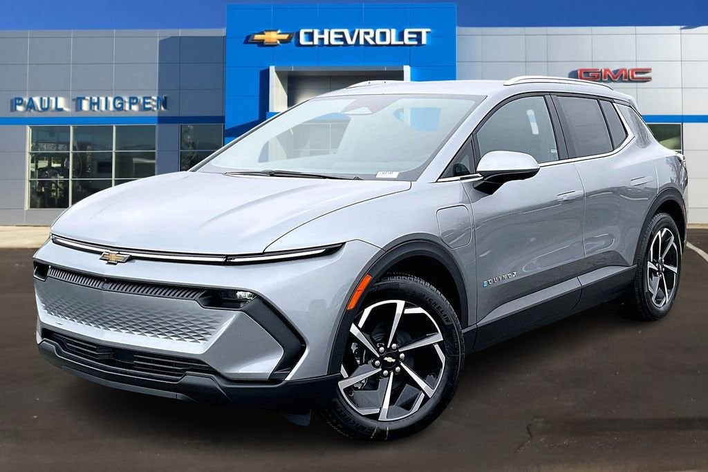 Sterling Gray Metallic 2026 Chevrolet Equinox EV LT Electric Motor FWD Active Safety Package 2 (Enhanced Traffic Sign Recognition, HD Surround Vision, and Rear Pedestrian Alert), Comfort Package (Driver 8-Way Power Seat Adjuster, Heated Automatic Steering Wheel, Heated Driver and Front Passenger Seats Cushion and Seatback, Power Driver Lumbar Control, and Round Bottom Wrapped Steering Wheel), 19 Wheels, 4-Wheel Disc Brakes, 6 Speakers, 6-Speaker Audio System Feature, ABS brakes, Air Conditioning, Alloy wheels, AM/FM radio: SiriusXM with 360L, Ambient Multi-Color Interior Lighting, Auto High-beam Headlights, Auto-Dimming Inside Rear-View Mirror, Auto-dimming Rear-View mirror, Automatic temperature control, Autosense Hands-Free Programmable Power Liftgate, Brake assist, Bright Roof Rails, Bumpers: body-color, Compass, Delay-off headlights, Driver and Front Passenger Illuminated Visors, Driver door bin, Driver vanity mirror, Dual front impact airbags, Dual front side impact airbags, Electronic Stability Control, Emergency communication system: OnStar and Chevrolet connected services capable, Evotex Seat Trim, Four wheel independent suspension, Front anti-roll bar, Front Bucket Seats, Front Center Armrest, Front Passenger 4-Way Manual Seat Adjuster, Front reading lights, Fully automatic headlights, Headlamps-Center Lit Bar, Heated door mirrors, Heated front seats, Heated steering wheel, Hitch Guidance, Hitch View, Illuminated entry, Knee airbag, Low tire pressure warning, Manual Folding Heated Outside Mirrors, Navigation system: Google built-in compatibility (select service plan required, terms and limitations apply), Occupant sensing airbag, Outside temperature display, Overhead airbag, Overhead console, Panic alarm, Passenger door bin, Passenger vanity mirror, Power door mirrors, Power driver seat, Power Liftgate, Power steering, Power windows, Power Windows with Driver Express-Up, Radio: 17.7 Diagonal Advanced Color LCD Display, Rear anti-roll bar, Rear reading lights, Rear seat center armrest, Rear window defroster, Rear window wiper, Remote keyless entry, Security system, SiriusXM with 360L Trial Subscription, Speed control, Split folding rear seat, Spoiler, Steering wheel mounted audio controls, Telescoping steering wheel, Tilt steering wheel, Traction control, Trip computer, Turn signal indicator mirrors, Variably intermittent wipers, and Wireless Phone Charging.