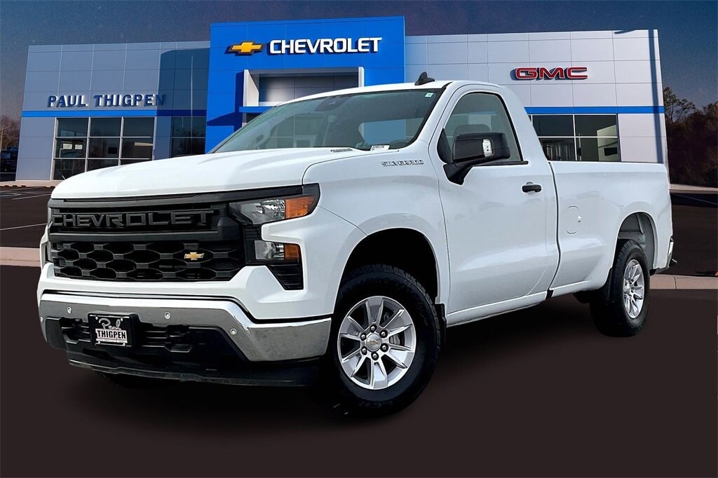 Paul Thigpen Chevrolet GMC 100 Semco Drive Vidalia, Georgia 30474 (844) 283-5935 www.paulthigpenchevy.com Paul Thigpen Chevrolet GMC has New car Preped this 2026 Chevrolet Silverado 1500 and comes with the following Preferred Equipment Group 1WT (3.5 Monochromatic Display Driver Info Center, 4-Way Manual Driver Seat Adjuster, 40/20/40 Front Split Bench Seat, Black (Semi-Gloss) Front Bumper, Black (Semi-Gloss) Rear Bumper, Bluetooth® For Phone, Electronic Cruise Control, Front Frame-Mounted Black Recovery Hooks, HD Rear Vision Camera, Heated Power-Adjustable Outside Mirrors, Inside Rearview Mirror with Tilt, Locking Tailgate, Manual Tailgate Function with No EZ Lift, Manual Tilt Wheel Steering Column, OnStar Services Capable, Power Front Windows with Driver Express Up/Down, Power Front Windows with Passenger Express Down, Remote Keyless Entry, Rubberized-Vinyl Floor Covering, SiriusXM Delete, Solar Absorbing Tinted Glass, Standard Tailgate, Teen Driver, Tire Pressure Monitoring System, Vinyl Seat Trim, Wheels: 17 x 8 Ultra Silver Painted Steel, and Wi-Fi Hot Spot Capable), Standard Suspension Package, Trailering Package (Hitch Guidance), Work Truck Package (Heavy-Duty Air Filter), WT Convenience Package (Deep-Tinted Glass and Electric Rear-Window Defogger), WT Safety Package (Front Chrome Bumper, High Gloss Black Mirror Caps, Lane Change Alert with Side Blind Zone Alert, Perimeter Lighting, Rear Chrome Bumper, Rear Cross Traffic Braking, Rear Pedestrian Alert, and Ultrasonic Front and Rear Park Assist), WT Value Package, 8-Speed Automatic, Jet Black Vinyl, 120-Volt Bed Mounted Power Outlet, 120-Volt Interior Power Outlet, 2 Speakers, 2-Speaker Audio System, 220 Amp Alternator, 3.42 Rear Axle Ratio, 4-Wheel Disc Brakes, ABS brakes, Air Conditioning, Apple CarPlay/Android Auto, Auto High-beam Headlights, Auto-Locking Rear Differential, Automatic Emergency Braking, Brake assist, Chevytec Spray-on Black Bedliner, Compass, Delay-off headlights, Driver door bin, Dual front impact airbags, Dual front side impact airbags, Electronic Stability Control, Emergency communication system: OnStar, EZ Lift Power Lock and Release Tailgate, Following Distance Indicator, Forward Collision Alert, Front anti-roll bar, Front Center Armrest w/Storage, Front License Plate Kit, Front Pedestrian Braking, Front reading lights, Front wheel independent suspension, Fully automatic headlights, Heated door mirrors, Illuminated entry, Integrated Trailer Brake Controller, IntelliBeam Automatic High Beam on/Off, Lane Keep Assist with Lane Departure Warning, Low tire pressure warning, Multi-Flex Tailgate, Occupant sensing airbag, Outside temperature display, Overhead airbag, Overhead console, Panic alarm, Passenger door bin, Passenger vanity mirror, Power door mirrors, Power steering, Power windows, Premium audio system: Chevrolet Infotainment 3, Radio data system, Radio: Chevrolet Infotainment 3 System, Rear reading lights, Rear step bumper, Remote keyless entry, Speed control, Speed-sensing steering, Tachometer, Tilt steering wheel, Traction control, Trip computer, Variably intermittent wipers, Voltmeter, and Wheels: 17 x 8 Bright Silver Painted AluminuM.
