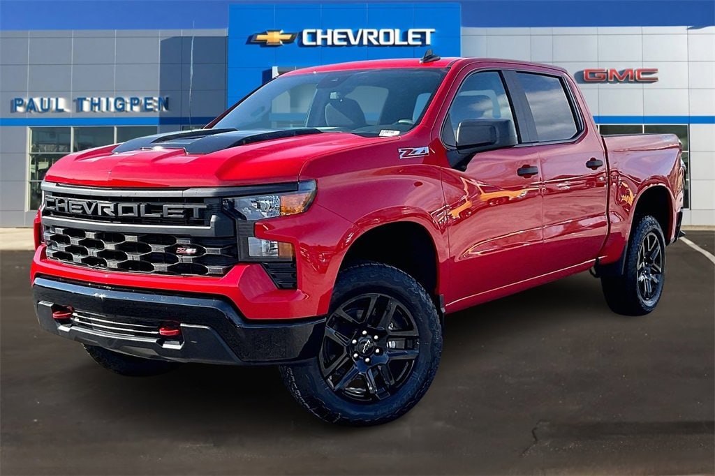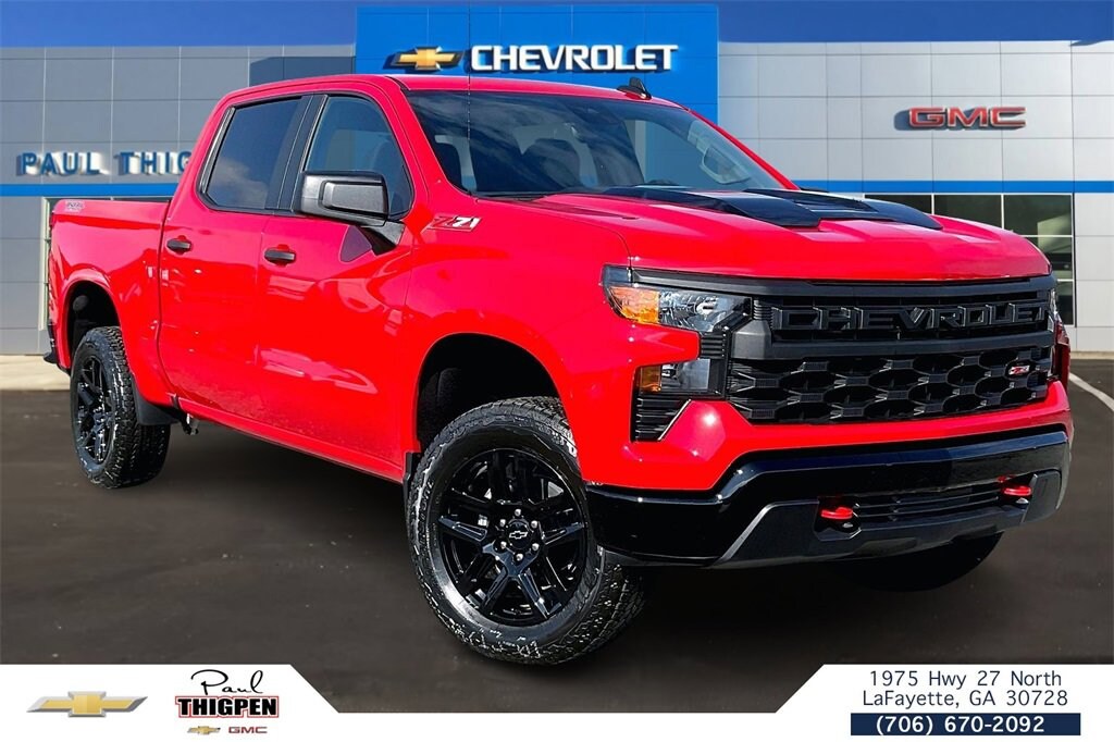 Recent Arrival!Red 2026 Chevrolet Silverado 1500 Custom Trail Boss EcoTec3 5.3L V8 4WD Custom Convenience Package (Electric Rear-Window Defogger, EZ Lift Power Lock & Release Tailgate, LED Cargo Area Lighting, Remote Vehicle Starter System, and Theft Deterrent System (Unauthorized Entry)), Suspension Package (Heavy-Duty Air Filter and Hill Descent Control), Trailering Package (Hitch Guidance), 10-Speed Automatic, 4WD, Cloth, 10-Way Power Driver Seat w/Lumbar, 120-Volt Bed Mounted Power Outlet, 120-Volt Interior Power Outlet, 220 Amp Alternator, 3.42 Rear Axle Ratio, 3.5 Monochromatic Display Driver Info Center, 4-Wheel Disc Brakes, 40/20/40 Front Split-Bench Seat, 6 Speakers, 6-Speaker Audio System, ABS brakes, Air Conditioning, Alloy wheels, AM/FM radio: SiriusXM, Apple CarPlay/Android Auto, Auto High-beam Headlights, Auto-Locking Rear Differential, Automatic Emergency Braking, Bluetooth® For Phone, Brake assist, Cloth Seat Trim, Color-Keyed Carpeting Floor Covering, Compass, Deep-Tinted Glass, Delay-off headlights, Driver door bin, Driver vanity mirror, Dual front impact airbags, Dual front side impact airbags, Dual Rear USB Ports (Charge Only), Electronic Cruise Control, Electronic Stability Control, Emergency communication system: OnStar, Following Distance Indicator, Forward Collision Alert, Front anti-roll bar, Front Center Armrest w/Storage, Front Pedestrian Braking, Front reading lights, Front Rubberized Vinyl Floor Mats, Front wheel independent suspension, Fully automatic headlights, HD Rear Vision Camera, Heated door mirrors, Illuminated entry, IntelliBeam Automatic High Beam On/Off, Lane Keep Assist w/Lane Departure Warning, Low tire pressure warning, Manual Tilt Wheel Steering Column, Occupant sensing airbag, OnStar Services Capable, Outside temperature display, Overhead airbag, Overhead console, Panic alarm, Passenger door bin, Passenger vanity mirror, Performance Red Recovery Hooks, Power door mirrors, Power driver seat, Power Front Windows w/Driver Express Up/Down, Power Front Windows w/Passenger Express Down, Power Rear Windows w/Express Down, Power steering, Power windows, Premium audio system: Chevrolet Infotainment 3, Radio data system, Radio: Chevrolet Infotainment 3 System, Rear 60/40 Folding Bench Seat (Folds Up), Rear reading lights, Rear Rubberized-Vinyl Floor Mats, Rear step bumper, Rear window defroster, Remote Keyless Entry, Remote keyless entry, Security system, Single Outlet Exhaust, SiriusXM Trial Subscription, Speed control, Speed-sensing steering, Split folding rear seat, Standard Tailgate, Tachometer, Teen Driver, Tilt steering wheel, Tire Pressure Monitoring System, Traction control, Trip computer, Variably intermittent wipers, Voltmeter, Wheels: 18 x 8.5 Black Painted Aluminum, and Wi-Fi Hot Spot Capable. 10-Speed Automatic, 4WD, Cloth.* *Discounted price Includes our Paul Thigpen Chevrolet GMC La Fayette TRADE-IN ASSISTANCE discount of $2,000.00* * * *Discounted price Includes our Paul Thigpen Chevrolet GMC La Fayette FINANCE WITH US -N- SAVE discount of $1,250.00* * - All discounts & promo offers are reflected in in discounted pricing (see qualifying details below) - To qualify for Trade-In Assistance - customers must trade-in a 2010 or newer vehicle. Trade must be in working condition with current registration, taxes, inspections(safety or Gov) and misc. Fees. - To qualify for FINANCE WITH US -N- SAVE discount you must qualify for, and finance at least $10,000.00 of purchase balance through a dealer sourced Credit Union, bank, or financial institution. **Consumer must refer to this ad to receive discounted pricing**Employees and their family members are excluded from special pricing discounts** Price includes: $1500 - Bonus Cash. Exp. 01/02/2026 $3250 - Customer Cash. Exp. 01/02/2026