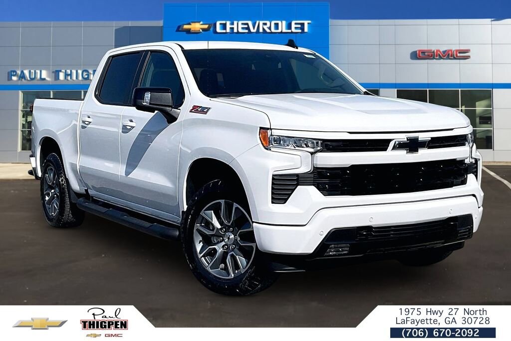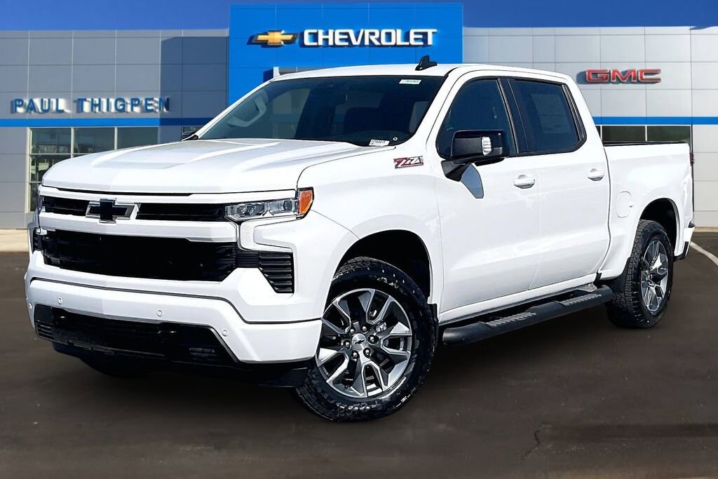 Summit White 2026 Chevrolet Silverado 1500 RST EcoTec3 5.3L V8 4WD Convenience Package (10-Way Power Driver Seat with Lumbar, 120-Volt Bed Mounted Power Outlet, 120-Volt Interior Power Outlet, Dual Rear USB Ports (charge Only), Dual-Zone Automatic Climate Control, Electric Rear-Window Defogger, Heated Driver and Front Outboard Passenger Seats, Heated Steering Wheel, Keyless Open and Start, LED Cargo Area Lighting, Manual Tilt/Telescoping Steering Column, Remote Vehicle Starter System, Theft Deterrent System (unauthorized Entry), and Wrapped Steering Wheel), Convenience Package II (Hitch Guidance with Hitch View, in-Vehicle Trailering System App, Power Sliding Rear Window with Rear Defogger, Premium Bose 7-Speaker Sound System, and Universal Home Remote), Leather Package (Leather-Appointed Front Seat Trim), Preferred Equipment Group 1SP (12.3 Multicolor Reconfigurable Digital Display, 40/20/40 Front Split-Bench Seat, 6-Speaker Audio System, All-Star Edition, Auto-Locking Rear Differential, Bluetooth® For Phone, Cloth Seat Trim, Color-Keyed Carpeting Floor Covering, Deep-Tinted Glass, Electronic Cruise Control, EZ Lift Power Lock and Release Tailgate, Front Frame-Mounted Black Recovery Hooks, Front LED Fog Lamps, Front Rubberized Vinyl Floor Mats, HD Rear Vision Camera, Heated Power-Adjustable Outside Mirrors, High Gloss Black Mirror Caps, Inside Rearview Mirror with Tilt, Integrated Trailer Brake Controller, OnStar Services Capable, Power Front Windows with Driver Express Up/Down, Power Front Windows with Passenger Express Down, Power Rear Windows with Express Down, Rear 60/40 Folding Bench Seat (folds Up), Rear Rubberized-Vinyl Floor Mats, SiriusXM with 360L Trial Subscription, Standard Tailgate, Steering Wheel Audio Controls, Teen Driver, Tire Pressure Monitoring System, Wheels: 18 x 8.5 Bright Silver Painted Aluminum, and Wi-Fi Hot Spot Capable), Protection Package (Chevytec Spray-on Black Bedliner and Rear Wheelhouse Liners), Safety Package (HD Surround Vision, Perimeter Lighting, Rear Cross Traffic Braking, Rear Pedestrian Alert, Trailer Camera Provisions, Trailer Side Blind Zone Alert, and Ultrasonic Front and Rear Park Assist), Standard Suspension Package, Trailering Package (Hitch Guidance), Up-Level Rear Seat with Storage Package, Z71 Off-Road Package (Dual Exhaust with Polished Outlets, Heavy-Duty Air Filter, Hill Descent Control, and Off-Road Suspension), 10-Speed Automatic, 4WD, Jet Black Leather, 170 Amp Alternator, 2 USB Data Ports, 220 Amp Alternator, 3.23 Rear Axle Ratio, 4-Wheel Disc Brakes, 4 Black Round Assist Steps, 6 Speakers, ABS brakes, Air Conditioning, All-Weather Floor Liner, Alloy wheels, AM/FM radio: SiriusXM with 360L, Apple CarPlay/Android Auto, Auto High-beam Headlights, Automatic Emergency Braking, Automatic temperature control, Auxiliary External Transmission Oil Cooler, Brake assist, Bumpers: body-color, Compass, Delay-off headlights, Driver door bin, Driver vanity mirror, Dual front impact airbags, Dual front side impact airbags, Electronic Stability Control, Electronic Transmission Range Selector Shifter, Emergency communication system: OnStar, External Engine Oil Cooler, Floor Mounted Center Console, Following Distance Indicator, Forward Collision Alert, Front anti-roll bar, Front Bucket Seats, Front Center Armrest w/Storage, Front dual zone A/C, Front fog lights, Front Pedestrian Braking, Front reading lights, Front wheel independent suspension, Fully automatic headlights, Heated door mirrors, Heated front seats, Heated steering wheel, Illuminated entry, IntelliBeam Automatic High Beam on/Off, Lane Keep Assist with Lane Departure Warning, Low tire pressure warning, Occupant sensing airbag, Outside temperature display, Overhead airbag, Overhead console, Panic alarm, Passenger door bin, Passenger vanity mirror, Power door m Price includes: $1500 - Bonus Cash. Exp. 04/30/2026 $3750 - Supplier Discount for Everyone. Exp. 0