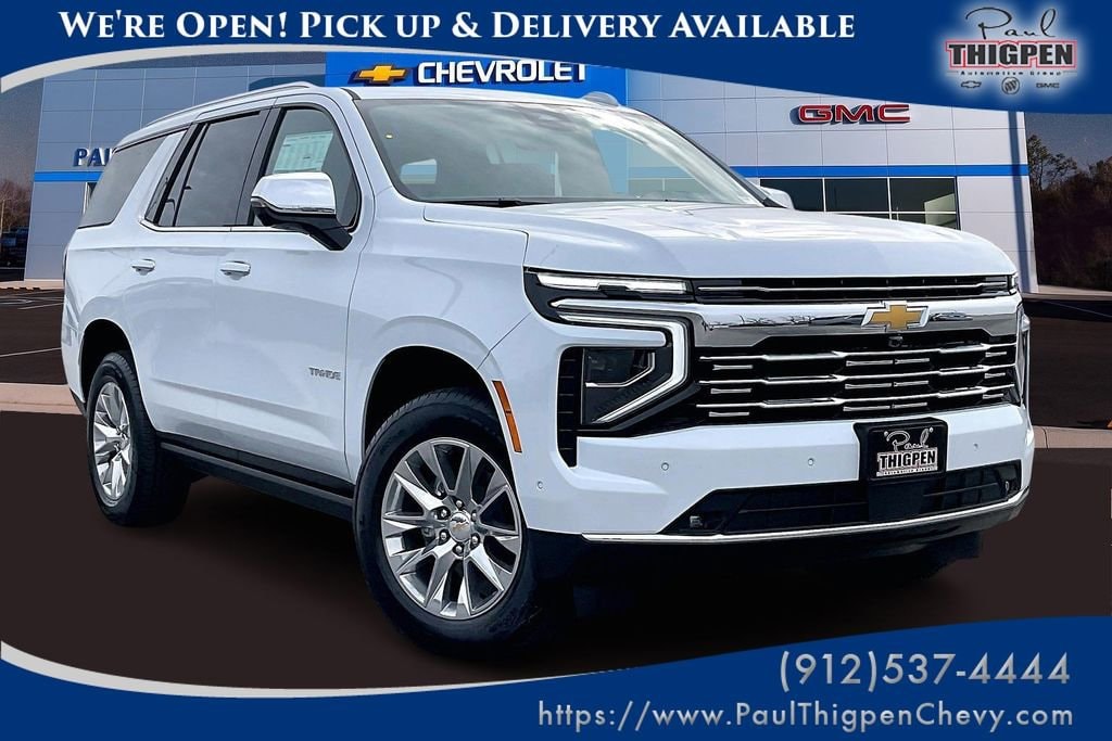 Paul Thigpen Chevrolet GMC 100 Semco Drive Vidalia, Georgia 30474 (844) 283-5935 www.paulthigpenchevy.com Paul Thigpen Chevrolet GMC has New car Preped this 2026 Chevrolet Tahoe and comes with the following Advanced Security Package (Glass Breakage Sensor, Theft-Deterrent Alarm System, Vehicle Inclination Sensor, and Vehicle Interior Movement Sensor), Advanced Trailering Package (Blind Zone Steering Assist with Trailering, Hitch View with Pan/Zoom Image Adjustment, and Smart Trailer Integration Indicator), License Plate Front Mounting Package, Max Trailering Package (2-Speed Active Electronic AutoTrac Transfer Case, Hill Descent Control, and Integrated Trailer Brake Controller), Preferred Equipment Group 1LZ (1st and 2nd Row Color-Keyed Carpeted Floor Mats, 20 x 9 Polished Aluminum Wheels, 3-Spoke Wrapped Steering Wheel, 3rd Row 60/40 Power-Folding Split-Bench Seat, Auto-Dimming Inside Rear-View Mirror, Bose 10-Speaker Centerpoint Surround Audio System Feature, Bright Front and Rear Door Sill Plates, Chrome Door Handles with Body-Color Strip, Chrome Mirror Caps, Color-Keyed Carpeting Floor Covering, Dual Exhaust System, Floor Console, Front Bucket Seats, Front LED Fog Lamps, Frontal Driver and Outboard Passenger Airbags, Heated 2nd Row Outboard Seats, Heated Steering Wheel, Interior Camera, Key Card, LED Headlamps with LED Daytime Running Lamps, LED Tail Lamps, Magnetic Ride Control Suspension, Memory Settings, Outside Heated Power-Adjustable Mirrors, Power Release 2nd Row Bucket Seats, Power Tilt and Telescopic Steering Column, Rear Power Liftgate, Remote Start, SiriusXM with 360L Trial Subscription, Universal Home Remote, and Wireless Phone Charging), Premium Liner Protection Package (3rd Row All-Weather Floor Liners, All-Weather Cargo Mat, and First and Second Rows Premium Floor Liners), Technology & Entertainment Package (Dual-Pane Power Panoramic Sunroof and Rear Seat Media System), Technology Package (15 Diagonal Multi-Color Head-Up Display, AutoSense Hands-Free Power Liftgate, and Inside Rearview Auo-Dimming Rear Camera Mirror), 4WD, Jet Black Leather, 10 Speakers, 3.23 Rear Axle Ratio, 3rd row seats: split-bench, 4-Way Power Driver Lumbar Seat Adjuster, 4-Way Power Front Passenger Lumbar Seat Adjuster, 4-Wheel Disc Brakes, 8-Way Power Driver Seat Adjuster, 8-Way Power Front Passenger Seat Adjuster, ABS brakes, Adaptive suspension, Air Conditioning, Alloy wheels, AM/FM radio: SiriusXM with 360L, Apple CarPlay/Android Auto, Auto High-beam Headlights, Auto-dimming door mirrors, Auto-dimming Rear-View mirror, Auto-leveling suspension, Automatic temperature control, Brake assist, Bumpers: body-color, Compass, Delay-off headlights, Driver and Front Passenger Heated and Ventilated Seats, Driver door bin, Driver vanity mirror, Dual front impact airbags, Dual front side impact airbags, Electronic Stability Control, Emergency communication system: OnStar and Chevrolet connected services capable, Exterior Parking Camera Rear, Extra Capacity Cooling System, Four wheel independent suspension, Front anti-roll bar, Front Center Armrest, Front dual zone A/C, Front fog lights, Front reading lights, Fully automatic headlights, Garage door transmitter, Heated door mirrors, Heated Driver and Front Passenger Seats, Heated front seats, Heated rear seats, Heated steering wheel, Illuminated entry, Low tire pressure warning, Memory seat, Navigation system: Google built-in compatibility (select service plan required, terms and limitations apply), Occupant sensing airbag, Outside temperature display, Overhead airbag, Overhead console, Panic alarm, Passenger door bin, Passenger vanity mirror, Perforated Leather Seat Trim, Power door mirrors, Power driver seat, Power Liftgate, Power passenger seat, Power steering, Power windows, Power-Retractable Assist Steps, Premium audio system: Chevrolet Infotainment 3 Premium, Radio data system, Radio: 17.7 Diagonal Advanced Color LCD Display, Rain sensing wip