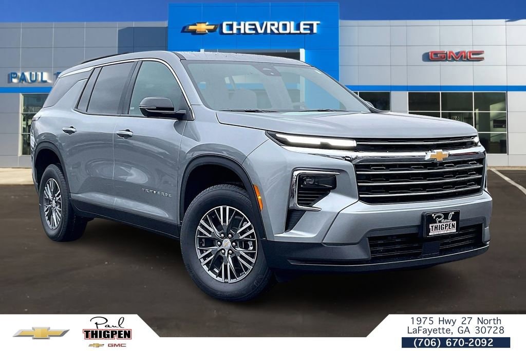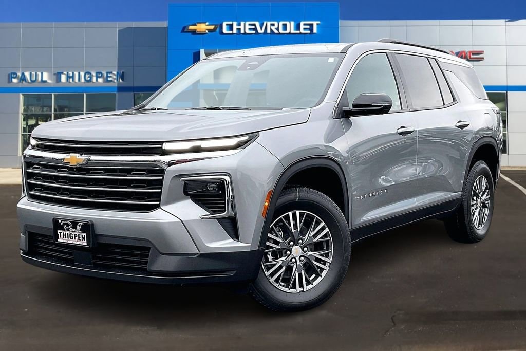 Sterling Gray Metallic 2026 Chevrolet Traverse LT 2.5L DOHC FWD Driver Confidence Package (HD Surround Vision, Key Card, Power Outlet, Rear Camera Mirror, Rear Pedestrian Alert, and Traffic Sign Recognition), Floor Liner Package (1st and 2nd Row All-Weather Floor Liners, 3rd Row All-Weather Floor Liner, and Integrated Cargo Liner), Preferred Equipment Group 1LT, 3rd row seats: split-bench, 4-Way Manual Front Passenger Seat Adjuster, 4-Wheel Disc Brakes, 6 Speakers, 6-Speaker Audio System Feature, 8-Way Power Driver Seat Adjuster, ABS brakes, Air Conditioning, Alloy wheels, AM/FM radio: SiriusXM with 360L, Apple CarPlay/Android Auto, Auto High-beam Headlights, Automatic temperature control, Brake assist, Bumpers: body-color, Child-Seat-Sensing Airbag, Compass, Delay-off headlights, Driver door bin, Driver vanity mirror, Dual front impact airbags, Dual front side impact airbags, Electronic Stability Control, Emergency communication system: OnStar, Four wheel independent suspension, Front anti-roll bar, Front Bucket Seats, Front Center Armrest, Front dual zone A/C, Front reading lights, Fully automatic headlights, Heated door mirrors, Heated Driver and Front Passenger Seats, Heated front seats, Heated steering wheel, Illuminated entry, Low tire pressure warning, Navigation System, Occupant sensing airbag, Outside temperature display, Overhead airbag, Overhead console, Panic alarm, Passenger door bin, Passenger vanity mirror, Power door mirrors, Power driver seat, Power Liftgate, Power steering, Power windows, Premium Cloth Seat Trim, Radio data system, Radio: : Audio System w/17.7 Diagonal Display, Rear air conditioning, Rear anti-roll bar, Rear reading lights, Rear window defroster, Rear window wiper, Remote keyless entry, Security system, SiriusXM with 360L Trial Subscription, Speed control, Speed-sensing steering, Spoiler, Steering wheel mounted audio controls, Tachometer, Telescoping steering wheel, Tilt steering wheel, Traction control, Trip computer, Turn signal indicator mirrors, Variably intermittent wipers, Voltmeter, and Wheels: 18 Grazen Metallic Machined-Face Aluminum.