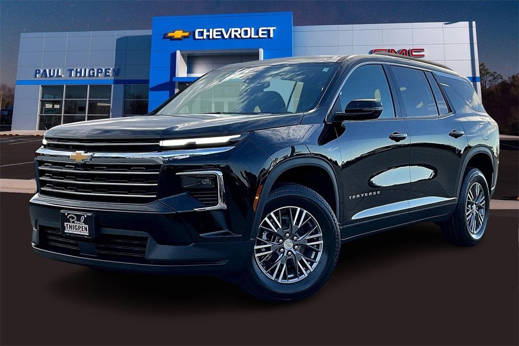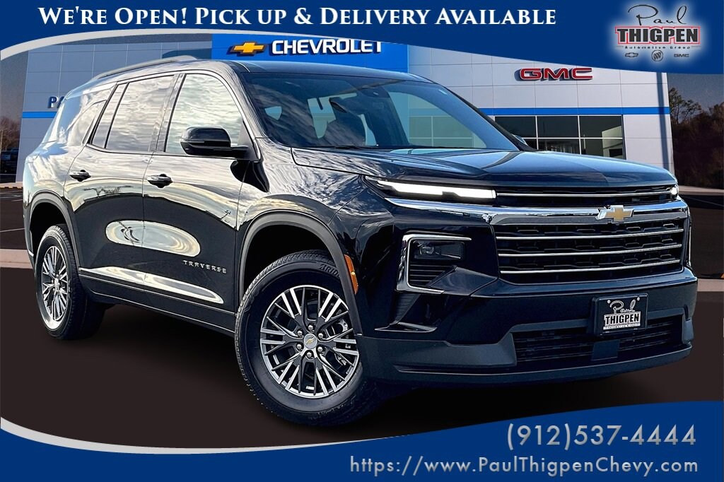Paul Thigpen Chevrolet GMC 100 Semco Drive Vidalia, Georgia 30474 (844) 283-5935 www.paulthigpenchevy.com Paul Thigpen Chevrolet GMC has New car Preped this 2026 Chevrolet Traverse and comes with the following 3rd row seats: split-bench, 4-Way Manual Front Passenger Seat Adjuster, 4-Wheel Disc Brakes, 6 Speakers, 6-Speaker Audio System Feature, 8-Way Power Driver Seat Adjuster, ABS brakes, Air Conditioning, Alloy wheels, AM/FM radio: SiriusXM with 360L, Apple CarPlay/Android Auto, Auto High-beam Headlights, Automatic temperature control, Brake assist, Bumpers: body-color, Child-Seat-Sensing Airbag, Compass, Delay-off headlights, Driver door bin, Driver vanity mirror, Dual front impact airbags, Dual front side impact airbags, Electronic Stability Control, Emergency communication system: OnStar, Four wheel independent suspension, Front anti-roll bar, Front Bucket Seats, Front Center Armrest, Front dual zone A/C, Front reading lights, Fully automatic headlights, Heated door mirrors, Heated Driver & Front Passenger Seats, Heated front seats, Heated steering wheel, Illuminated entry, Low tire pressure warning, Navigation System, Occupant sensing airbag, Outside temperature display, Overhead airbag, Overhead console, Panic alarm, Passenger door bin, Passenger vanity mirror, Power door mirrors, Power driver seat, Power Liftgate, Power steering, Power windows, Premium Cloth Seat Trim, Radio data system, Radio: Audio System w/17.7 Diagonal Display, Rear air conditioning, Rear anti-roll bar, Rear reading lights, Rear window defroster, Rear window wiper, Remote keyless entry, Security system, SiriusXM w/360L Trial Subscription, Speed control, Speed-sensing steering, Spoiler, Steering wheel mounted audio controls, Tachometer, Telescoping steering wheel, Tilt steering wheel, Traction control, Trip computer, Turn signal indicator mirrors, Variably intermittent wipers, Voltmeter, and Wheels: 18 Grazen Metallic Machined-Face AluminuM.