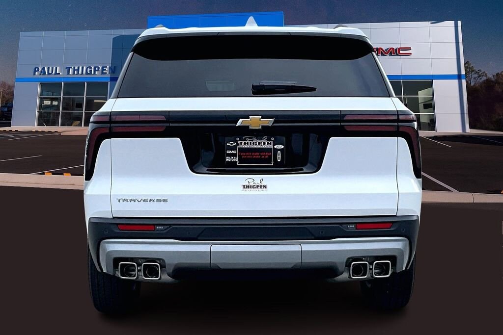 Paul Thigpen Chevrolet GMC 100 Semco Drive Vidalia, Georgia 30474 (844) 283-5935 www.paulthigpenchevy.com Paul Thigpen Chevrolet GMC has New car Preped this 2026 Chevrolet Traverse and comes with the following Driver Confidence Package (HD Surround Vision, Key Card, Power Outlet, Rear Camera Mirror, Rear Pedestrian Alert, and Traffic Sign Recognition), Enhanced Driving Package (Active Noise Cancellation, Bose Premium 12-Speaker Audio System Feature, Driver Attention Assist, Enhanced Automatic Parking Assist, and Super Cruise), Preferred Equipment Group 1LT, 3rd row seats: split-bench, 4-Way Manual Front Passenger Seat Adjuster, 4-Wheel Disc Brakes, 6 Speakers, 6-Speaker Audio System Feature, 8-Way Power Driver Seat Adjuster, ABS brakes, Air Conditioning, Alloy wheels, AM/FM radio: SiriusXM with 360L, Apple CarPlay/Android Auto, Auto High-beam Headlights, Automatic temperature control, Brake assist, Bumpers: body-color, Child-Seat-Sensing Airbag, Compass, Delay-off headlights, Driver door bin, Driver vanity mirror, Dual front impact airbags, Dual front side impact airbags, Electronic Stability Control, Emergency communication system: OnStar, Four wheel independent suspension, Front anti-roll bar, Front Bucket Seats, Front Center Armrest, Front dual zone A/C, Front reading lights, Fully automatic headlights, Heated door mirrors, Heated Driver and Front Passenger Seats, Heated front seats, Heated steering wheel, Illuminated entry, Low tire pressure warning, Navigation System, Occupant sensing airbag, Outside temperature display, Overhead airbag, Overhead console, Panic alarm, Passenger door bin, Passenger vanity mirror, Power door mirrors, Power driver seat, Power Liftgate, Power steering, Power windows, Premium Cloth Seat Trim, Radio data system, Radio: : Audio System w/17.7 Diagonal Display, Rear air conditioning, Rear anti-roll bar, Rear reading lights, Rear window defroster, Rear window wiper, Remote keyless entry, Security system, SiriusXM with 360L Trial Subscription, Speed control, Speed-sensing steering, Spoiler, Steering wheel mounted audio controls, Tachometer, Telescoping steering wheel, Tilt steering wheel, Traction control, Trip computer, Turn signal indicator mirrors, Variably intermittent wipers, Voltmeter, and Wheels: 18 Grazen Metallic Machined-Face AluminuM.20/26 City/Highway MPGSummit White 2026 Chevrolet Traverse LT 1LT FWD 8-Speed Automatic 2.5L DOHC