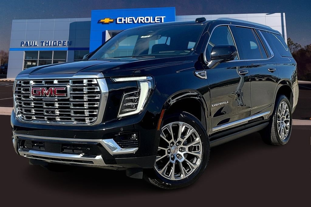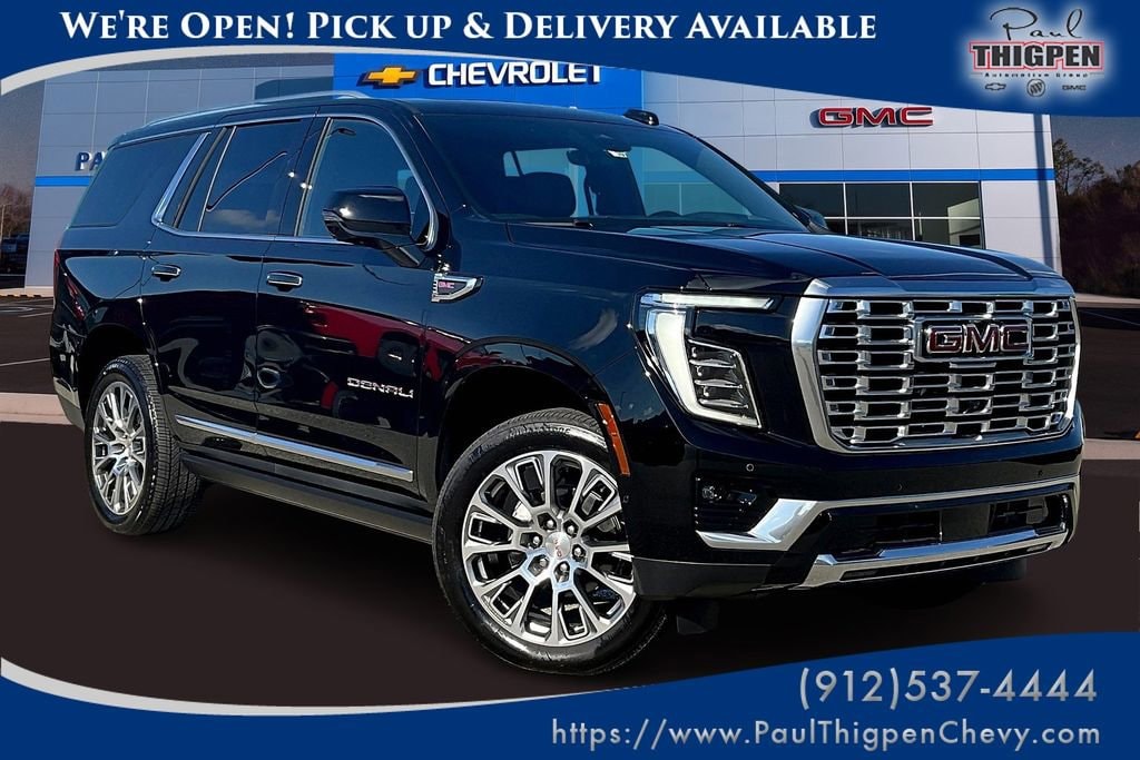 Paul Thigpen Chevrolet GMC 100 Semco Drive Vidalia, Georgia 30474 (844) 283-5935 www.paulthigpenchevy.com Paul Thigpen Chevrolet GMC has New car Preped this 2025 GMC Yukon and comes with the following Advanced Security Package (Glass Breakage Sensor, Theft-Deterrent Alarm System, Vehicle Inclination Sensor, and Vehicle Interior Movement Sensor), Advanced Technology Package (3 Years of OnStar Services/Safety Services, Driver Attention Assist, Inside Rearview Auo-Dimming Rear Camera Mirror, Rear Seat Media System, and Super Cruise), Denali Reserve Package (Dual-Pane Panoramic Power Sunroof and Power-Retractable Assist Steps), Enhanced Trailering Technology Package (Trailer Camera Provisions, Trailering Assist Guidelines, and Wired Auxiliary Trailer Camera), Floor Liner Package (3rd Row All-Weather Floor Liners, All-Weather Cargo Mat, and First and Second Rows Premium Floor Liners), Max Trailering Package (Blind Zone Steering Assist with Trailering, Extra Capacity Cooling System, Hitch View, Integrated Trailer Brake Controller, and Smart Trailer Integration Indicator), Preferred Equipment Group 5SA (15 Diagonal Multi-Color Head-Up Display, 4-Way Power Driver Lumbar Seat Adjuster, 4-Way Power Front Passenger Lumbar Seat Adjuster, AutoSense Hands-Free Power Liftgate, Bright Front and Rear Door Sill Plates, Dual Exhaust System, Galvano Bodyside Moldings, Magnetic Ride Control Suspension, Perforated Heather and Ventilated Driver and Front Passenger Seats, Power Release 2nd Row Bucket Seats, Power Tilt and Telescopic Steering Column, and Wheels: 20 x 9 6-Spoke Polished Aluminum), 10 Speakers, 3 Years SiriusXM, 3.23 Rear Axle Ratio, 3rd row seats: split-bench, 4-Wheel Disc Brakes, ABS brakes, Adaptive suspension, Air Conditioning, Alloy wheels, AM/FM radio: SiriusXM with 360L, Apple CarPlay/Android Auto, Audio memory, Auto High-beam Headlights, Auto-dimming door mirrors, Auto-dimming Rear-View mirror, Auto-leveling suspension, Automatic temperature control, Bodyside moldings, Bose 10-Speaker Surround with CenterPoint, Brake assist, Bumpers: body-color, Compass, Delay-off headlights, Driver door bin, Driver vanity mirror, Dual front impact airbags, Dual front side impact airbags, Electronic Stability Control, Emergency communication system: OnStar and GMC connected services capable, Exterior Parking Camera Rear, Four wheel independent suspension, Front anti-roll bar, Front Bucket Seats, Front Center Armrest, Front dual zone A/C, Front fog lights, Front reading lights, Fully automatic headlights, Garage door transmitter, Heads-Up Display, Heated door mirrors, Heated Driver and Front Passenger Seats, Heated front seats, Heated rear seats, Heated steering wheel, Illuminated entry, Low tire pressure warning, Memory seat, Navigation system: GMC Connected Navigation, Occupant sensing airbag, Outside temperature display, Overhead airbag, Overhead console, Panic alarm, Passenger door bin, Passenger vanity mirror, Perforated Leather Seating Surfaces, Power door mirrors, Power driver seat, Power Liftgate, Power passenger seat, Power steering, Power windows, Radio: 16.8 Diagonal Premium GMC Infotainment System, Rain sensing wipers, Rear air conditioning, Rear anti-roll bar, Rear reading lights, Rear window defroster, Rear window wiper, Remote keyless entry, Security system, SiriusXM with 360L, Speed control, Speed-sensing steering, Split folding rear seat, Spoiler, Steering wheel memory, Steering wheel mounted audio controls, Tachometer, Telescoping steering wheel, Tilt steering wheel, Traction control, Trip computer, Turn signal indicator mirrors, Variably intermittent wipers, Ventilated front seats, Voltmeter, Wheel Locks (set of 4), and Wheels: 22 x 9 Ultra-Bright MachineD.