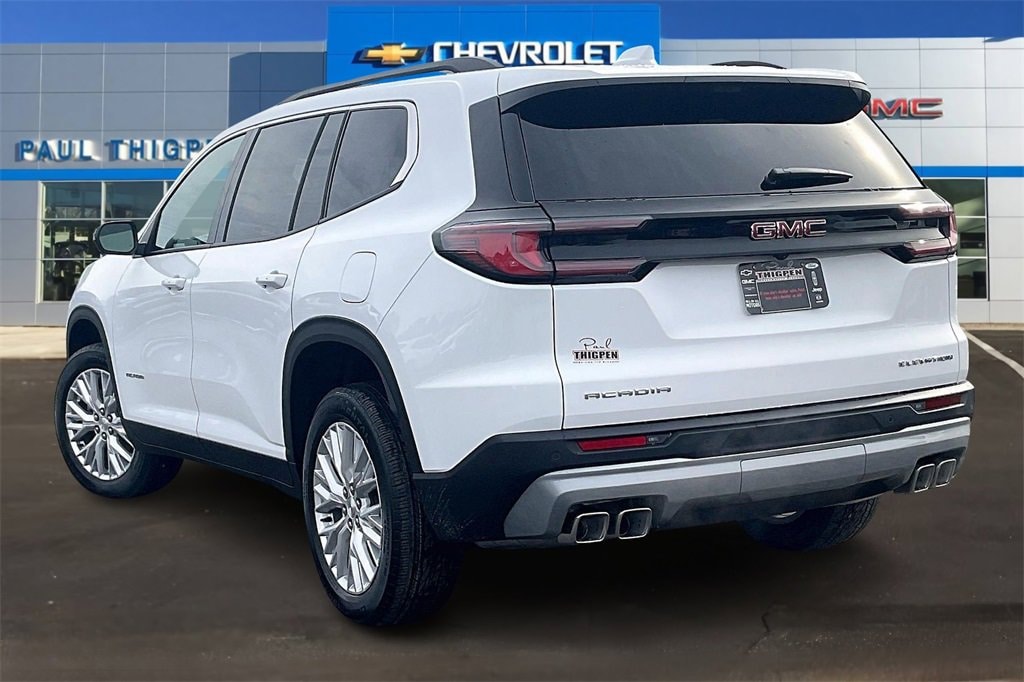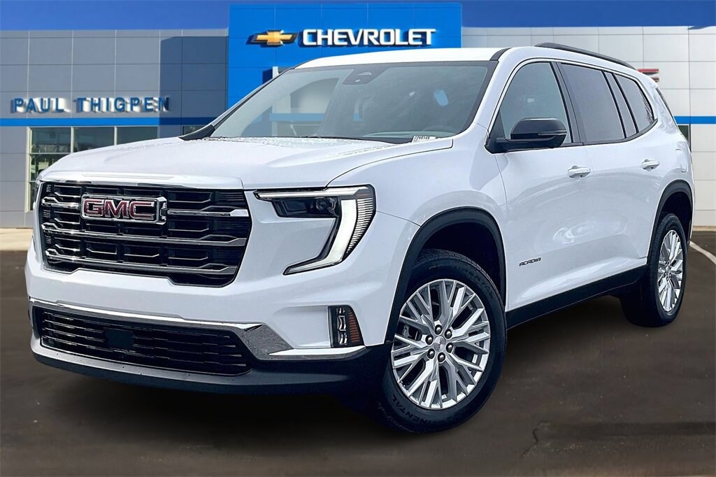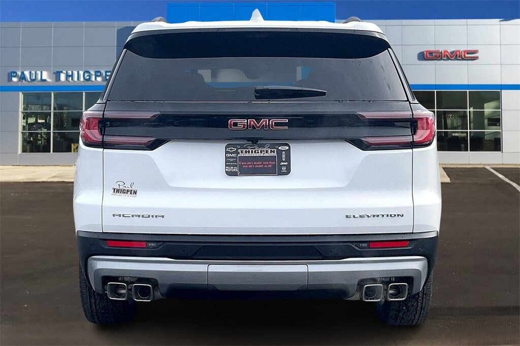 White 2026 GMC Acadia Elevation 2.5L DOHC FWD FWD, Cloth, 12 Speakers, 18 x 7.5 Aluminum Wheels, 3.49 Final Drive Axle Ratio, 3rd row seats: split-bench, 4-Way Manual Front Passenger Seat Adjuster, 4-Wheel Disc Brakes, 8-Passenger Seating (2-3-3 Seating Configuration), 8-Way Power Driver Seat Adjuster, ABS brakes, Air Conditioning, Alloy wheels, AM/FM radio: SiriusXM with 360L, Apple CarPlay/Android Auto, Auto High-beam Headlights, Automatic temperature control, Bodyside moldings, Bose Premium 12-Speaker System with Sub-Woofer, Brake assist, Bumpers: body-color, Cloth Seat Trim, Compass, Delay-off headlights, Driver 2-Way Power Lumbar Seat Adjuster, Driver door bin, Driver vanity mirror, Dual front impact airbags, Dual front side impact airbags, Electronic Stability Control, Emergency communication system: OnStar Services capable, Exterior Parking Camera Rear, Four wheel independent suspension, Front anti-roll bar, Front Bucket Seats, Front Center Armrest, Front dual zone A/C, Front fog lights, Front reading lights, Fully automatic headlights, Heated door mirrors, Heated Driver and Front Passenger Seats, Heated front seats, Heated steering wheel, Illuminated entry, Leather steering wheel, Low tire pressure warning, Navigation System, Occupant sensing airbag, Outside temperature display, Overhead airbag, Overhead console, Panic alarm, Passenger door bin, Passenger vanity mirror, Power door mirrors, Power driver seat, Power Liftgate, Power steering, Power windows, Radio data system, Radio: 15 Diagonal Premium GMC Infotainment System, Rear air conditioning, Rear anti-roll bar, Rear reading lights, Rear seat center armrest, Rear side impact airbag, Rear window defroster, Rear window wiper, Remote keyless entry, Security system, SiriusXM with 360L, Speed control, Speed-sensing steering, Split folding rear seat, Spoiler, Sport steering wheel, Steering wheel mounted audio controls, Tachometer, Telescoping steering wheel, Tilt steering wheel, Traction control, Trip computer, Turn signal indicator mirrors, Variably intermittent wipers, and Voltmeter. FWD, Cloth.