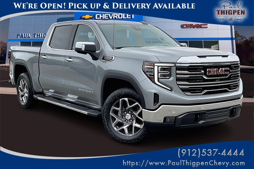 Paul Thigpen Chevrolet GMC 100 Semco Drive Vidalia, Georgia 30474 (844) 283-5935 www.paulthigpenchevy.com Paul Thigpen Chevrolet GMC has New car Preped this 2026 GMC Sierra 1500 and comes with the following High Capacity Suspension Package, Preferred Equipment Group 4SA (120-Volt Bed Mounted Power Outlet, 120-Volt Interior Power Outlet, 170 Amp Alternator, 2 Charge/Data USB Ports, 2 Type-C Charge-Only Rear USB Ports, 6-Speaker Audio System Feature, Auto-Locking Rear Differential, Auxiliary External Transmission Oil Cooler, Chrome Header & Chrome Grille Insert Bars, Color-Keyed Carpeting Floor Covering, Deep-Tinted Glass, Electric Rear-Window Defogger, Front Frame-Mounted Black Recovery Hooks, Front Rain-Sensing Wipers, HD Rear Vision Camera, Integrated Trailer Brake Controller, Keyless Open & Start, LED Cargo Area Lighting, Manual Tilt-Wheel & Telescoping Steering Column, OnStar Services Capable, Perimeter Lighting, Power Door Locks, Power Front Passenger Windows w/Express Up/Down, Power Front Windows w/Driver Express Up/Down, Power Rear Windows w/Express Down, Push Button Start, Rear Wheelhouse Liners, Remote Vehicle Starter System, SiriusXM w/360L Trial Subscription, Steering Wheel Audio Controls, Theft Deterrent System (Unauthorized Entry), and Wi-Fi Hotspot Capable), ProGrade Trailering System (Hitch View and In-Vehicle Trailering System App), Sierra Safety Plus Package (HD Surround Vision, Rear Cross Traffic Braking, Rear Pedestrian Detection, Safety Alert Seat, Trailer Camera Provisions, Trailer Side Blind Zone Alert, and Ultrasonic Front & Rear Park Assist), SLT Convenience Package (2 Charge/Data USB Ports Inside Center Console, Electronic Precision Shift, Floor-Mounted Center Console, Front Bucket Seats, Power Rake & Telescoping Steering Column, Premium Bose 7-Speaker Sound System, Ventilated Driver & Front Passenger Seats, and Wireless Charging), SLT Preferred Package (Adaptive Cruise Control, Heated 2nd Row Outboard Seats, Power Sliding Rear Window w/Rear Defogger, and Universal Home Remote), SLT Premium Package (20 Polished Aluminum Wheels and Chrome Wheel To Wheel Assist Steps), Standard Suspension Package, Trailering Package (Hitch Guidance), X31 Off-Road Package (Dual Exhaust System, Heavy-Duty Air Filter, Hill Descent Control, Off-Road Suspension, and X31 Hard Badge), 10-Speed Automatic, 4WD, Jet Black Leather, 10-Way Power Driver Seat Adjuster w/Lumbar, 10-Way Power Passenger Seat Adjuster w/Lumbar, 3.23 Rear Axle Ratio, 4-Wheel Disc Brakes, 6 Speakers, ABS brakes, Air Conditioning, Alloy wheels, AM/FM radio: SiriusXM with 360L, Apple CarPlay/Android Auto, Auto High-beam Headlights, Auto-dimming door mirrors, Auto-dimming Rear-View mirror, Automatic Emergency Braking, Automatic temperature control, Brake assist, Buckle to Drive, Bumpers: chrome, Compass, Delay-off headlights, Driver door bin, Driver Memory, Driver vanity mirror, Dual front impact airbags, Dual front side impact airbags, Electronic Stability Control, Emergency communication system: OnStar, Engine Block Heater, Following Distance Indicator, Forward Collision Alert, Front 40/20/40 Split-Bench Seat, Front anti-roll bar, Front Center Armrest w/Storage, Front dual zone A/C, Front fog lights, Front Pedestrian Braking, Front reading lights, Front wheel independent suspension, Fully automatic headlights, Heated door mirrors, Heated Driver & Front Outboard Passenger Seating, Heated front seats, Heated steering wheel, Illuminated entry, IntelliBeam Automatic High Beam On/Off, Lane Keep Assist w/Lane Departure Warning, Low tire pressure warning, Memory seat, Navigation System, Occupant sensing airbag, Outside temperature display, Overhead airbag, Overhead console, Panic alarm, Passenger door bin, Passenger vanity mirror, Perf Leather-Appointed Front Outboard Seat Trim, Power door mirrors, Power driver seat, Power passenger seat, Power steering, Power Sunroof, Power windows, Radio data system, Radio: Premium GMC Infotainment Audio System, Rain sensing