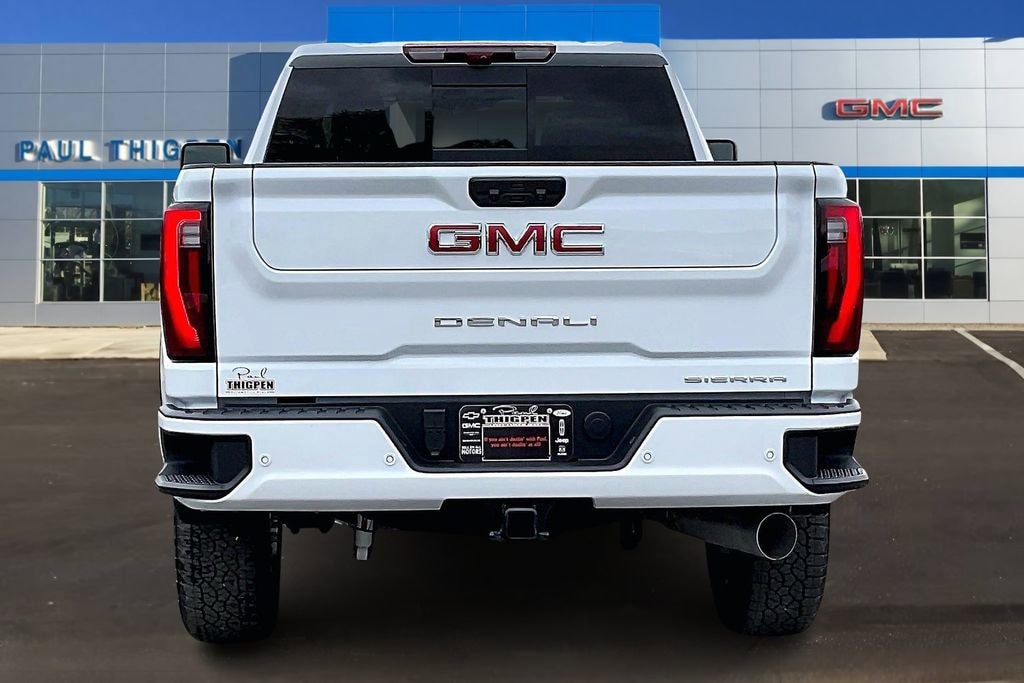 Glacier White Tricoat 2026 GMC Sierra 2500HD Denali Duramax 6.6L V8 Turbodiesel 4WD Denali Reserve Package (Power Sunroof), Preferred Equipment Group 5SA (120-Volt Bed Mounted Power Outlet, 120-Volt Instrument Panel Power Outlet, 2 Charge-Only Rear USB Ports, 2 Charge/Data USB Ports Inside Center Console, 2 USB Ports, 2-Speed Active Transfer Case, Bed View Camera with Two Trailer Camera Provisions, Bose Premium 7-Speaker Sound System, Deep-Tinted Glass, Electric Rear-Window Defogger, Floor-Mounted Center Console, Front Rain-Sensing Wipers, HD Surround Vision, Heated 2nd Row Outboard Seats, Heated Driver and Front Outboard Passenger Seats, Keyless Open and Start, LED Cargo Area Lighting, LED Smoked Amber Roof Marker Lamps, Manual Tilt-Wheel/Telescoping Steering Column, OnStar Services Capable, Polished Exhaust Tip, Power Front Passenger Windows with Express Up/Down, Power Sliding Rear Window with Defogger, Push Button Start, Rear Cross Traffic Alert, Rear Wheelhouse Liners, Remote Vehicle Starter System, Safety Alert Seat, Signature Chrome Denali Grille, SiriusXM with 360L Trial Subscription, Spray-on Pickup Bedliner with GMC Logo, Steering Wheel Audio Controls, Trailer Cam Provisions and Trailer Viewing Software, Trailer Side Blind Zone Alert, Ultrasonic Front and Rear Park Assist, Unauthorized Entry Theft-Deterrent System, Universal Home Remote, Ventilated Driver and Front Passenger Seats, Wireless Charging, and Wireless Phone Projection), Technology Package (Inside Rearview Auo-Dimming Rear Camera Mirror and Multicolor 15 Diagonal Head-Up Display), X31 Off-Road Package (Hill Descent Control and Off-Road Suspension), 10-Speed Automatic, 4WD, Atmosphere/Brownstone Leather, 12-Way Power Driver Seat Adjuster with Lumbar, 12-Way Power Passenger Seat Adjuster with Lumbar, 220-Amp Alternator, 4-Wheel Disc Brakes, 7 Speakers, ABS brakes, Air Conditioning, Alloy wheels, AM/FM radio: SiriusXM with 360L, Apple CarPlay/Android Auto, Auto High-beam Headlights, Auto-dimming door mirrors, Auto-dimming Rear-View mirror, Automatic Emergency Braking, Automatic temperature control, Brake assist, Buckle to Drive, Bumpers: body-color, Compass, Delay-off headlights, Driver door bin, Driver Memory, Driver vanity mirror, Dual front impact airbags, Dual front side impact airbags, Electronic Stability Control, Emergency communication system: OnStar, Engine Block Heater, Exhaust Brake, Following Distance Indicator, Forge Perforated Leather-Appointed Front Seat Trim, Forward Collision Alert, Front anti-roll bar, Front Bucket Seats, Front Center Armrest, Front dual zone A/C, Front fog lights, Front Pedestrian Braking, Front reading lights, Front wheel independent suspension, Fully automatic headlights, Garage door transmitter, Genuine wood dashboard insert, Genuine wood door panel insert, Heated door mirrors, Heated front seats, Heated rear seats, Heated steering wheel, Heavy-Duty 80 Amp Battery, Hitch Guidance with Hitch View, Illuminated entry, in-Vehicle Trailering System App, IntelliBeam Automatic High Beam on/Off, Lane Departure Warning System, Low tire pressure warning, Memory seat, Occupant sensing airbag, Outside temperature display, Overhead airbag, Overhead console, Panic alarm, Passenger door bin, Passenger vanity mirror, Pickup Box, Power door mirrors, Power driver seat, Power passenger seat, Power steering, Power windows, Premium audio system: Premium GMC Infotainment System, Radio: AM/FM Stereo with Premium GMC Infotainment System, Rain sensing wipers, Rear reading lights, Rear seat center armrest, Rear step bumper, Rear window defroster, Remote keyless entry, Security system, Speed control, Speed-sensing steering, Split folding rear seat, Steering wheel mounted audio controls, Tachometer, Telescoping steering wheel, Tilt steering wheel, Traction control, Trip computer, Turn signal indicator mirrors, Upfitter Switch Kit (5), Variably intermittent wipers, Ventilated front seats Price include