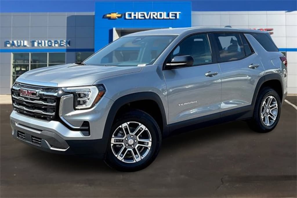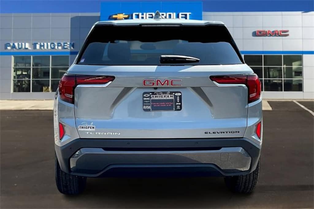 Sterling Metallic 2026 GMC Terrain Elevation 1.5L DOHC FWD License Plate Front Mounting Package, Preferred Equipment Group 3SA, 4-Wheel Disc Brakes, 5.81 Final Drive Axle Ratio, 6 Speakers, 6-Speaker Audio System Feature, ABS brakes, Air Conditioning, Alloy wheels, AM/FM radio: SiriusXM, Auto High-beam Headlights, Automatic temperature control, Brake assist, Bumpers: body-color, Compass, Delay-off headlights, Driver & Front Passenger Heated Seats, Driver 6-Way Manual Seat Adjuster, Driver door bin, Driver vanity mirror, Dual front impact airbags, Dual front side impact airbags, Electronic Stability Control, Emergency communication system: OnStar and GMC connected services capable, Four wheel independent suspension, Front anti-roll bar, Front Bucket Seats, Front Center Armrest, Front Passenger 4-Way Manual Seat Adjuster, Front reading lights, Fully automatic headlights, Heated door mirrors, Heated front seats, Heated steering wheel, Illuminated entry, Low tire pressure warning, Memory seat, Navigation System, Occupant sensing airbag, Outside temperature display, Overhead airbag, Panic alarm, Passenger door bin, Passenger vanity mirror, Power door mirrors, Power steering, Power windows, Premium Cloth Seat Trim, Radio data system, Radio: Premium GMC Infotainment System, Rear air conditioning, Rear anti-roll bar, Rear seat center armrest, Rear window defroster, Rear window wiper, Remote keyless entry, Security system, SiriusXM w/360L Trial Subscription, Speed control, Speed-sensing steering, Split folding rear seat, Spoiler, Sport steering wheel, Steering wheel mounted audio controls, Tachometer, Telescoping steering wheel, Tilt steering wheel, Traction control, Trip computer, Variably intermittent wipers, Wheels: 17 Grazen Metallic Machined Aluminum, and Wireless Apple CarPlay/Wireless Android Auto.