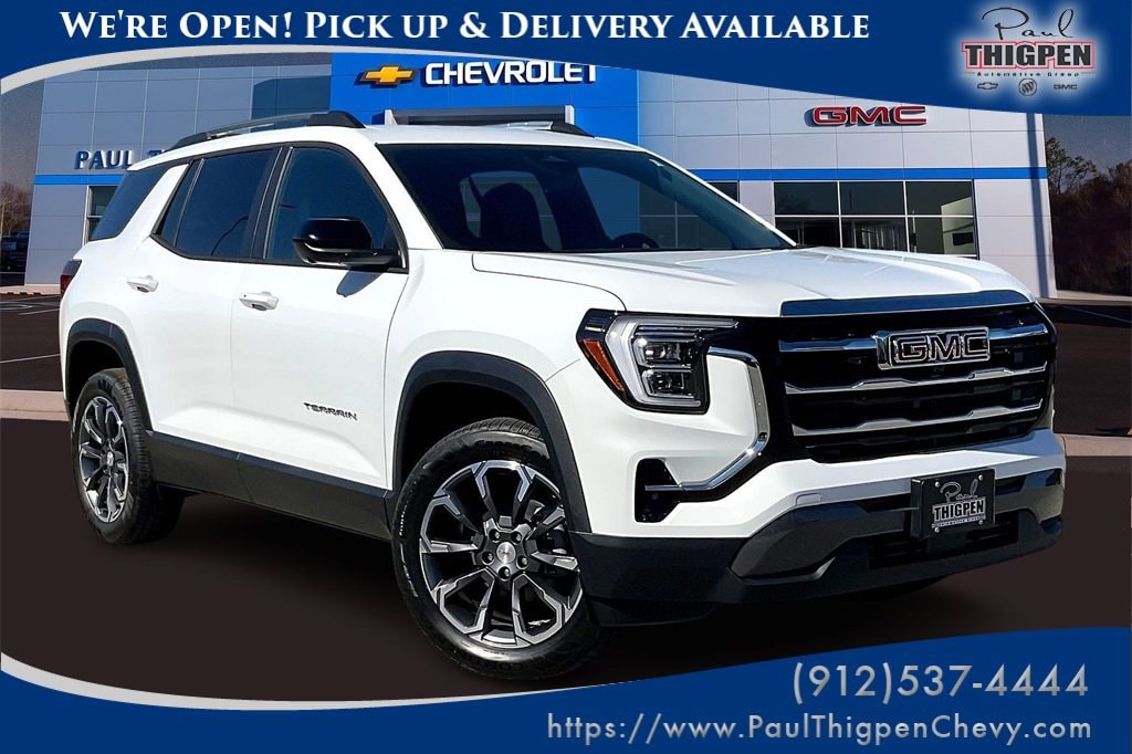Paul Thigpen Chevrolet GMC 100 Semco Drive Vidalia, Georgia 30474 (844) 283-5935 www.paulthigpenchevy.com Paul Thigpen Chevrolet GMC has New car Preped this 2026 GMC Terrain and comes with the following Convenience Package II (2-Way Power Driver Lumbar Seat Adjuster, 3-Channel Programmable Universal Home Remote, 8-Way Power Driver Seat Adjuster, AutoSense Hands-Free Power Programmable Liftgate, Brushed Aluminum Roof Rails, Cabin Humidity & Windshield Temperature Sensor, Dual-Zone Automatic Climate Control, Front Intermittent RainSense Wipers, Heated Wiper Park, Overhead Sunglass Storage, and Wireless Phone Charging for Portable Devices), Elevation Premium Package (CoreTec Seat Trim), License Plate Front Mounting Package, Preferred Equipment Group 3SB, Technology Package II (Front LED Fog Lamps, HD Surround Vision, Rear Camera Mirror, Rear Camera Mirror Washer, Rear Pedestrian Alert, and Traffic Sign Recognition), AWD, 3.47 Final Drive Axle Ratio, 4-Wheel Disc Brakes, 6 Speakers, 6-Speaker Audio System Feature, ABS brakes, Air Conditioning, Alloy wheels, AM/FM radio: SiriusXM, Auto High-beam Headlights, Automatic temperature control, Brake assist, Bumpers: body-color, Compass, Delay-off headlights, Driver & Front Passenger Heated Seats, Driver 6-Way Manual Seat Adjuster, Driver door bin, Driver vanity mirror, Dual front impact airbags, Dual front side impact airbags, Electronic Stability Control, Emergency communication system: OnStar and GMC connected services capable, Four wheel independent suspension, Front anti-roll bar, Front Bucket Seats, Front Center Armrest, Front Passenger 4-Way Manual Seat Adjuster, Front reading lights, Fully automatic headlights, Heated door mirrors, Heated front seats, Heated steering wheel, Illuminated entry, Low tire pressure warning, Navigation System, Occupant sensing airbag, Outside temperature display, Overhead airbag, Panic alarm, Passenger door bin, Passenger vanity mirror, Power door mirrors, Power steering, Power windows, Premium Cloth Seat Trim, Radio data system, Radio: Premium GMC Infotainment System, Rear air conditioning, Rear anti-roll bar, Rear seat center armrest, Rear window defroster, Rear window wiper, Remote keyless entry, Security system, SiriusXM w/360L Trial Subscription, Speed control, Speed-sensing steering, Split folding rear seat, Spoiler, Sport steering wheel, Steering wheel mounted audio controls, Tachometer, Telescoping steering wheel, Tilt steering wheel, Traction control, Trip computer, Variably intermittent wipers, Wheels: 17 Grazen Metallic Machined Aluminum, Wheels: 19 Technical Gray Machine-Face Aluminum, and Wireless Apple CarPlay/Wireless Android AutO.