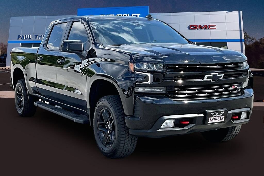 Paul Thigpen Chevrolet GMC 100 Semco Drive Vidalia, Georgia 30474 (844) 283-5935 www.paulthigpenchevy.com Paul Thigpen Chevrolet GMC has serviced and detailed this 2021 Chevrolet Silverado 1500 and comes with the following Bed Protection Package (Chevytec Spray-On Black Bedliner and Rear Wheelhouse Liners), Cloth Rear Seat w/Storage Package, Convenience Package w/Buckets Seats (10-Way Power Driver Seat w/Lumbar, Dual-Zone Automatic Climate Control, Floor Mounted Center Console, Heated Driver & Front Outboard Passenger Seats, Heated Steering Wheel, and Manual Tilt/Telescoping Steering Column), Preferred Equipment Group 2LT (12-Volt Rear Auxiliary Power Outlet, 170 Amp Alternator, 2 USB Ports (First Row), 4.2 Diagonal Color Display Driver Info Center, 4G LTE Wi-Fi Hot Spot Capable, 6-Speaker Audio System, All-Weather Floor Liner (LPO) (AAK), Auto-Locking Rear Differential, Auxiliary External Transmission Oil Cooler, Bluetooth® For Phone, Chevrolet Connected Access Capable, Color-Keyed Carpeting Floor Covering, Compass, Deep-Tinted Glass, Dual Exhaust w/Polished Outlets, Electric Rear-Window Defogger, Electrical Lock Control Steering Column, Electronic Cruise Control, EZ Lift Power Lock & Release Tailgate, Front LED Fog Lamps, High Gloss Black Grille, High Gloss Black Mirror Caps, Keyless Open & Start, Leather Wrapped Steering Wheel, LED Cargo Area Lighting, LED Reflector Headlamps, OnStar & Chevrolet Connected Services Capable, Performance Red Recovery Hooks, Power Door Locks, Power Front Windows w/Driver Express Up/Down, Power Front Windows w/Passenger Express Down, Power Rear Windows w/Express Down, Rear Dual USB Charging-Only Ports, Rear Vision Camera, Remote Vehicle Starter System, SiriusXM Radio, Standard Tailgate, Steering Wheel Audio Controls, and Theft Deterrent System (Unauthorized Entry)), Suspension Package (Heavy-Duty Air Filter and Hill Descent Control), Trailering Package (Hitch Guidance), 10-Speed Automatic, 4WD, Jet Black Cloth, 3.23 Rear Axle Ratio, 4-Wheel Disc Brakes, 6 Speakers, 6 Black Tubular Assist Steps (LPO), ABS brakes, Air Conditioning, Alloy wheels, AM/FM radio: SiriusXM, Apple CarPlay/Android Auto, Automatic temperature control, Brake assist, Cloth Seat Trim, Delay-off headlights, Driver door bin, Driver vanity mirror, Dual front impact airbags, Dual front side impact airbags, Electronic Stability Control, Engine Block Heater, Front anti-roll bar, Front Bucket Seats, Front Center Armrest w/Storage, Front dual zone A/C, Front fog lights, Front License Plate Kit, Front reading lights, Front wheel independent suspension, Fully automatic headlights, Heated door mirrors, Heated front seats, Heated steering wheel, Illuminated entry, Integrated Trailer Brake Controller, Low tire pressure warning, Not Equipped w/Automatic Stop/Start, Occupant sensing airbag, Off-Road Suspension w/2 Lift, Outside temperature display, Overhead airbag, Overhead console, Panic alarm, Passenger door bin, Passenger vanity mirror, Power door mirrors, Power driver seat, Power steering, Power windows, Premium audio system: Chevrolet Infotainment 3, Radio data system, Radio: Chevrolet Infotainment 3 System, Rear reading lights, Rear seat center armrest, Rear step bumper, Rear window defroster, Remote keyless entry, Security system, Speed control, Speed-sensing steering, Split folding rear seat, Steering wheel mounted audio controls, Tachometer, Telescoping steering wheel, Tilt steering wheel, Traction control, Trip computer, Variably intermittent wipers, Voltmeter, and Wheels: 18 x 8.5 Black Painted AluminuM.Recent Arrival! Clean CARFAX. Odometer is 32493 miles below market average!Black 2021 Chevrolet Silverado 1500 LT Trail Boss 4WD 10-Speed Automatic EcoTec3 6.2L V8 10-Speed Automatic, 4WD, Jet Black Cloth.Price may or may not include all Service reconditioning, see dealer for details. **NOT ALL PRE-OWNED CARS & TRUCKS COME WITH 2 KEYS** * *Discounted price Includes our Paul Thigpen Chevrolet