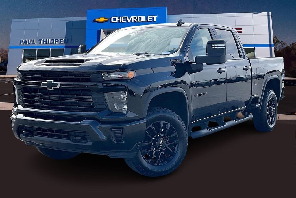 Paul Thigpen Chevrolet GMC 100 Semco Drive Vidalia, Georgia 30474 (844) 283-5935 www.paulthigpenchevy.com Paul Thigpen Chevrolet GMC has serviced and detailed this 2026 Chevrolet Silverado 2500HD and comes with the following Custom Blackout Package (Wheels: 20 High Gloss Black Painted), Custom Convenience Package (10-Way Power Driver Seat Adjuster with Lumbar, 120-Volt Bed Mounted Power Outlet, 120-Volt Interior Power Outlet, Dual Rear USB Ports (charge Only), Electric Rear-Window Defogger, EZ Lift Power Lock and Release Tailgate, LED Cargo Area Lighting, Remote Vehicle Starter System, and Unauthorized Entry Theft-Deterrent System), Custom Value Package (Auto-Dimming Inside Rear-View Mirror and Heated and Auto-Dimming Vertical Trailering Mirrors), CX Safety Package (Lane Change Alert with Side Blind Zone Alert, Rear Cross Traffic Alert, and Ultrasonic Front and Rear Park Assist), Preferred Equipment Group 1CX (170 Amp Alternator, 2-Speed Electronic Shift Transfer Case, 3.5 Diagonal Monochromatic Display DIC, Black Mirror Caps, Bluetooth® For Phone, Chevrolet Connected Access Capable, Color-Keyed Carpeting Floor Covering, Compass, Deep-Tinted Glass, Durabed Pickup Bed, Electronic Cruise Control with Set and Resume Speed, Front Rubberized Vinyl Floor Mats, HD Rear Vision Camera, Heated Vertical Trailering Mirrors, Locking Tailgate, Manual Tailgate Function with No EZ Lift, Manual Tilt-Wheel Steering Column, OnStar Services Capable, Power Door Locks, Power Front Windows with Driver Express Up/Down, Power Front Windows with Passenger Express Down, Power Rear Windows with Express Down, Push Button Start, Rear 60/40 Folding Bench Seat (folds Up), Rear Rubberized Vinyl Floor Mats, Remote Keyless Entry, SiriusXM with 360L Trial Subscription, Standard Tailgate, Wheels: 20 10-Spoke Machined Aluminum, Wi-Fi Hotspot Capable, and Wireless Phone Projection), Suspension Package, Z71 Off-Road Package (Hill Descent Control and Off-Road Suspension), 10-Speed Automatic, 4WD, Black Cloth, 220 Amp Alternator, 4-Wheel Disc Brakes, 4 Round Black Assist Steps, 6 Speakers, 6-Speaker Audio System, 720 Cold-Cranking Amps Heavy-Duty Battery, ABS brakes, Air Conditioning, Alloy wheels, AM/FM radio: SiriusXM with 360L, Apple CarPlay/Android Auto, Auto High-beam Headlights, Black Tailgate Lettering, Brake assist, Cloth Seat Trim, Delay-off headlights, Driver door bin, Dual front impact airbags, Dual front side impact airbags, Electronic Stability Control, Emergency communication system: OnStar, Engine Block Heater, Exhaust Brake, Front 40/20/40 Split-Bench Seats with Lockable Storage, Front anti-roll bar, Front Center Armrest w/Storage, Front License Plate Kit, Front reading lights, Front wheel independent suspension, Fully automatic headlights, Heated door mirrors, Illuminated entry, Low tire pressure warning, Occupant sensing airbag, Outside temperature display, Overhead airbag, Overhead console, Panic alarm, Passenger door bin, Passenger vanity mirror, Power door mirrors, Power steering, Power windows, Premium audio system: Chevrolet Infotainment 3, Radio: Chevrolet Infotainment 3 System, Rear reading lights, Rear step bumper, Remote keyless entry, Speed control, Split folding rear seat, Tachometer, Tilt steering wheel, Traction control, Trip computer, Turn signal indicator mirrors, Variably intermittent wipers, Voltmeter, and Winter Grille CoveR.