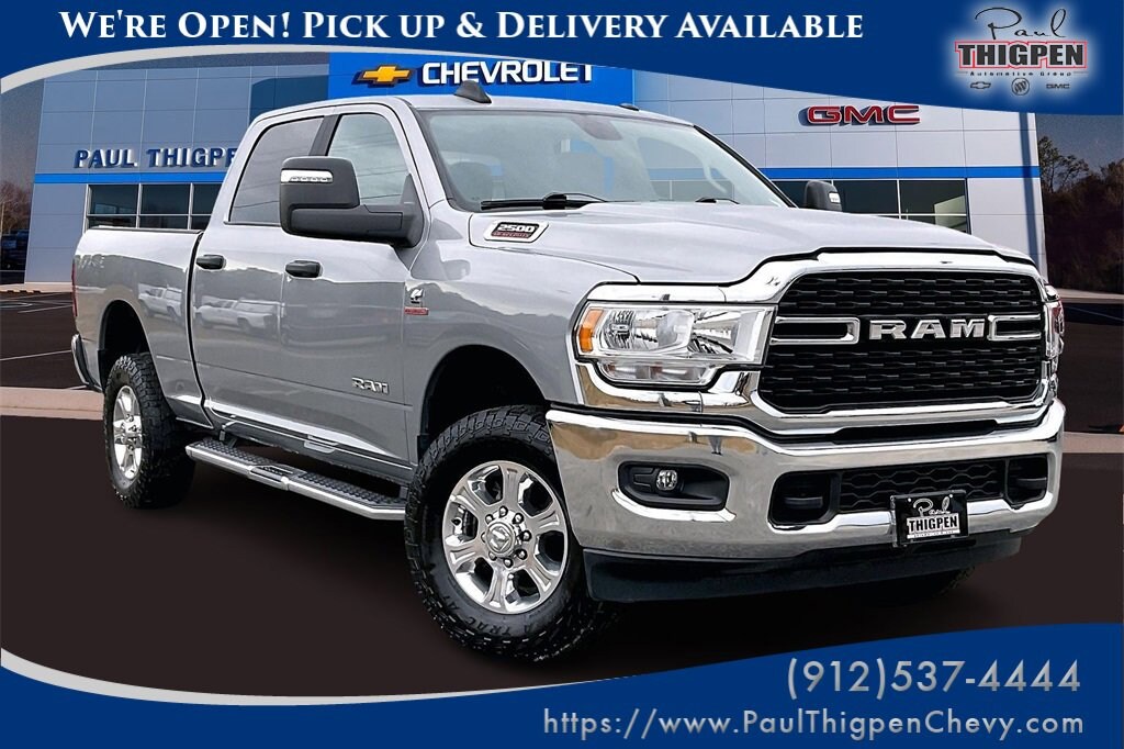 Paul Thigpen Chevrolet GMC 100 Semco Drive Vidalia, Georgia 30474 (844) 283-5935 www.paulthigpenchevy.com Paul Thigpen Chevrolet GMC has serviced and detailed this 2024 Ram 2500 and comes with the following Level 1 Equipment Group (2 Way Rear Headrest Seat, 2nd Row In Floor Storage Bins, 4 Way Front Headrests, 40/20/40 Split Bench Seat, 4G LTE Wi-Fi Hot Spot, 8.4 Touchscreen Display, Apple CarPlay, Auto Power-Folding Mirrors, Big Horn IP Badge, Black Exterior Mirrors, Bluetooth Handsfree Phone & Audio, Center Hub, Connectivity - US/Canada, Dual Glove Boxes, Exterior Mirrors Courtesy Lamps, Exterior Mirrors w/Heating Element, Exterior Mirrors w/Supplemental Signals, Foam Bottle Insert (Door Trim Panel), Footwell Courtesy Lamp, Forward & Reverse Utility Lights, Front Armrest w/Cupholders, Front Center Seat Cushion Storage, Front Fog Lamps, Front Seat Back Map Pockets, Global Telematics Box Module (TBM), Glove Box Lamp, Google Android Auto, GPS Antenna Input, Integrated Center Stack Radio, Integrated Voice Command w/Bluetooth, Leather Wrapped Steering Wheel, Locking Lower Glove Box, Manual Adjust 4-Way Front Passenger Seat, Mirror Running Lights, Power 2-Way Driver Lumbar Adjust, Power Adjust 8-Way Driver Seat, Power Adjust Mirrors, Power Adjustable Convex Aux Mirrors, Power Heated Fold Telescope Mirrors, Power Telescoping Mirrors, Premium Cloth 40/20/40 Bench Seat, Radio: Uconnect 5 W w/8.4 Display (A62), Rear 60/40 Folding Seat, Rear Dome w/On/Off Switch Lamp, Remote USB Port - Charge Only, Selectable Tire Fill Alert, SiriusXM Radio Service, SiriusXM Satellite Radio, Steering Wheel Mounted Audio Controls, Storage Tray, and Wheels: 18 x 8.0 Polished Aluminum), Quick Order Package 2HZ Big Horn, 4D Crew Cab, Cummins 6.7L I6 Turbodiesel, 6-Speed Automatic, 4WD, 4-Wheel Disc Brakes, 6 Speakers, ABS brakes, Active Noise Control System, Brake assist, Chrome Flat Cab-Length Side Steps, Compass, Delay-off headlights, Electronic Stability Control, Emergency communication system: SiriusXM Guardian, Front Center Armrest w/Storage, Fully automatic headlights, Heated door mirrors, Illuminated entry, Low tire pressure warning, Outside temperature display, Overhead console, Panic alarm, ParkView Rear Back-Up Camera, Power door mirrors, Power steering, Power windows, Premium Cloth 40/20/40 Bench Seat (DISC), Radio data system, Radio: Uconnect 5 W w/8.4 Display, Rear Folding Seat, Rear seat center armrest, Rear step bumper, Remote keyless entry, Speed control, Tilt steering wheel, Tip Start, Traction control, Trip computer, Turn signal indicator mirrors, Variably intermittent wipers, 3.73 Axle Ratio, Air Conditioning, Bumpers: chrome, Center Stack Storage Drawer, Cloth 40/20/40 Bench Seat, Driver door bin, Dual front impact airbags, Dual front side impact airbags, Front anti-roll bar, Front License Plate Bracket, Front reading lights, Manual Adjust 4-Way Driver Seat, Manufacturer's Statement of Origin, Occupant sensing airbag, Overhead airbag, Passenger door bin, Passenger vanity mirror, Rear anti-roll bar, Tachometer, Tow Hooks, and VoltmeteR.